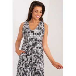Látková vesta je jedinečným kouskem dámského šatníku, který v sobě spojuje eleganci a jemnost. Tato vesta je ideální do práce nebo na obchodní schůzky a vnese do vašeho stylingu nádech sofistikované elegance. Vesta, vyrobená převážně z bavlny, poskytuje pohodlné nošení a příjemný pocit na kůži. Díky své univerzálnosti je ideální pro podzimní/zimní a jarní období a umožňuje vytvářet stylové kombinace po celý rok. Délka vesty je standardní, což z ní činí dokonalý doplněk k různým vzhledům. Díky geometrickému vzoru je moderní a originální a podtrhuje individuální styl ženy, která ji nosí. Zapínání na knoflíky dodává vestě elegantní nádech a zároveň umožňuje její snadné oblékání a svlékání. Díky svému decentnímu designu ji lze nosit ke kalhotám i sukni, čímž vždy vytvoříte stylový a rafinovaný komplet. Tato látková vesta je určena pro ženy, které chtějí svou eleganci projevit decentním a nesmírně okouzluj