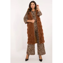 Vytvořená s ohledem na ženy, které ocení eleganci a pohodlí, tato kožešinová vesta je výjimečným prvkem vašeho šatníku. Vesta je dokonalým spojením elegance a pohodlí. Její šlechtický design z ní dělá ideální k nošení v formálních situacích, do práce nebo na důležité obchodní schůzky. Díky svému vkusnému charakteru se vesta skvěle hodí jako součást pracovního oblečení a na významné příležitosti, dodávající vaší stylizaci výjimečný charakter. Vesta je vyrobena z odolného a snadno ošetřitelného polyesteru. Tento materiál nejen vypadá luxusně, ale také zajišťuje pohodlí při nošení. Kožešinová vesta je určena na chladnější dny a skvěle chrání před chladem, zároveň dodává eleganci každému stylu. Vesta je vybavena jemnou, ale účinnou izolací, což ji činí nejen módním doplňkem, ale také funkčním prvkem šatníku na zimní dny. Délka vesty sahající před kolena dodává celkovému vzhledu eleganci a zvýrazňuje