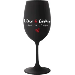 VÍNO A LÁSKA: OBOJÍ ZRAJE ČASEM - černá sklenice na víno 350 ml