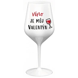 VÍNO JE MŮJ VALENTÝN - bílá nerozbitná sklenice na víno 470 ml