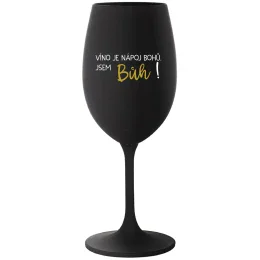 VÍNO JE NÁPOJ BOHŮ. JSEM BŮH! - černá sklenice na víno 350 ml