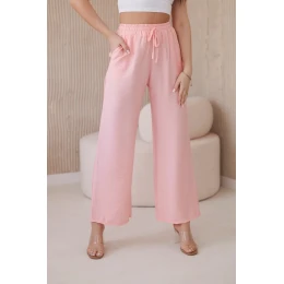 Viskózové nohavice so širokými nohavicami svetlo púdrovo ružovej farby