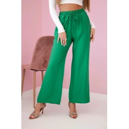 Viskózové nohavice so širokými nohavicami svetlozelenej farby