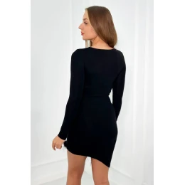 Pletené šaty s kožušinou v spodnej časti čierne