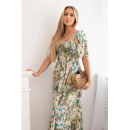 Viskózové šaty s volánovým výstrihom 29477 khaki - Kesi