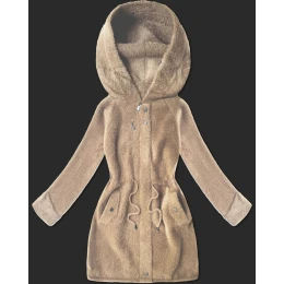 Vlnená bunda z alpaky s kapucňou svetlo béžová (W214#)