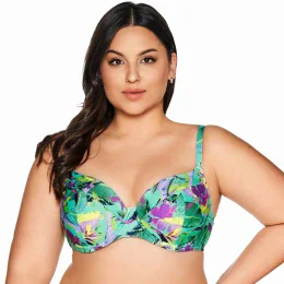 Vrchný diel plaviek 210 green AVA - zelená farba - farebný prírodný motív - košíčky z elastického materiálu vystužené penou - eleganciu dodáva zdobenie originálnym holografickým leskom
