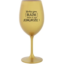 VŠICHNI JSOU BLÁZNI...JENOM JÁ JSEM JEDNOROŽEC! - zlatá sklenice na víno 350 ml