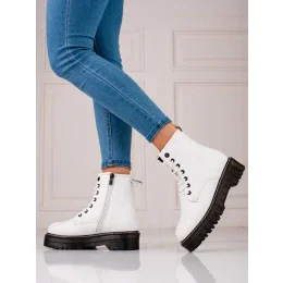 Vynikajúce dámske biele členkové topánky na plochom podpätku