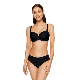 Klasická podprsenka v univerzálnej farbe, ktorá je dokonalým doplnkom každého šatníka na spodnú bielizeň. Vystužené košíčky, vyrobené z korzetovej peny podšité hladkým úpletom. Vnútorná strana košíčkov je podšitá bavlnou vyhovujúcou norme OEKO-TEX, vďaka čomu je šetrná k pokožke. Zvislé bočné veľrybích kostice stabilizujú obvod podprsenky. Podprsenka je zdobená malými mašličkami medzi košíčkami a na ramienkach. Podprsenka bola navrhnutá a ušitá v Poľsku.