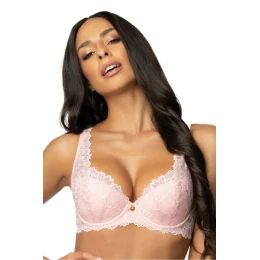 Úchvatná podprsenka Carmela. Krásne vyzerá na každom hrudníku. Celá je vyrobená z jemnej čipky v svetlo ružovej farbe, ktorá sa na prsiach sexi prehýba a na ramienku stúpa. Ramienka sú nastaviteľné, neodopínateľné. Dvojrýchlostné zapínanie na háčiky a slučky s trojcestným nastavením.