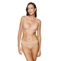 Klasická podprsenka, ktorá je ideálnym doplnkom každej súpravy spodnej bielizne. Podprsenka s hladkými tepelne tvarovanými košíčkami jemne nadvihuje prsia. Košíčky sú zdobené čipkou. Bezšvové košíčky sú z vnútornej strany vystužené dvojitou vrstvou tylu na bokoch, vďaka čomu sú prsia v strede lepšie zhromaždené. Zadná časť je vyrobená z čipkovanej tkaniny. Podprsenka bola navrhnutá a vyrobená v Poľsku.