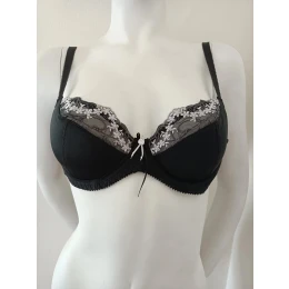 Dámska vystužená podprsenka, s kosticou, spodná časť vystužená, vrchná časť z komfortnej čipky. Posúvacie ramienka, zapínanie vzadu na dva háčiky.