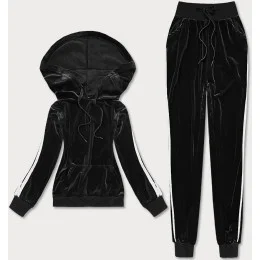 Čierny velúrový teplákový komplet s lampasmi (YP-9964)