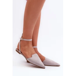 Wiązane Baleriny Eko Zamszowe Z Noskami W Szpic Szare Ellesara