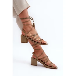 Wiązane Sandały Na Niskim Obcasie Ozdobione Ćwiekami Zielone Chrisele