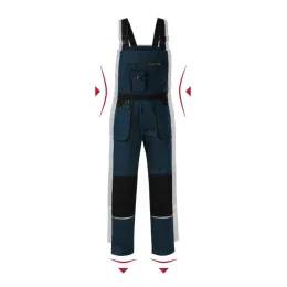guma v zadnej časti bedrového goliera zapínanie na gombíky v bočnej časti šerpy s elastickou časťou nastaviteľná pracka 8 multifunkčných vreciek zdvojený materiál v oblasti kolien a sedadla plastové "D" pútko a karabína na kľúče a identifikačné karty pútko na kladivo dvojité prešitie pre vyššiu odolnosť reflexné prvky
