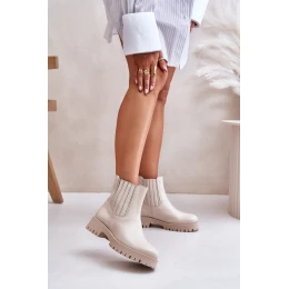 Wsuwane Botki Damskie Na Płaskim Obcasie Skórzane Lewski 3611 Jasnobeżowe