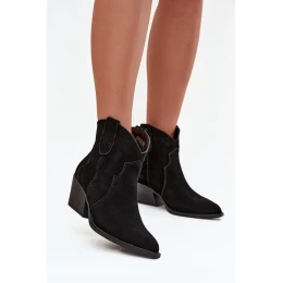 Wsuwane Botki Kowbojki Damskie Z Naturalnego Zamszu Czarne Beretta