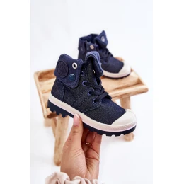 Wysokie Dziecięce Trampki Wiązane Granatowe Tobby