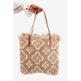 Wzorzysta Duża Pleciona Torba Na Plażę Brązowa Sadhara