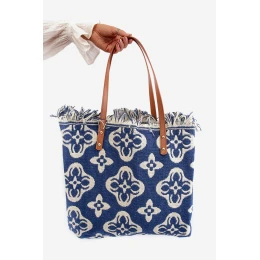 Wzorzysta Duża Pleciona Torba Na Plażę Granatowa Sadhara