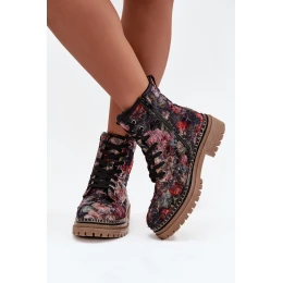 Wzorzyste Botki Damskie Ocieplane Artiker 57C1054 Czarne