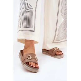 Žabky vyrobené z ekokože. Ozdobný zlatý detail na prednej strane, ktorý im dodáva jemný lesk. Osadené na platforme zdobenej flitrami, ktoré dodajú každému outfitu trochu šmrncu. Profilovaná stielka poskytuje pohodlie počas celého dňa. Tieto žabky sú ideálne na letné dni, skvele sa hodia k šatám, sukniam alebo nohaviciam a kombinujú módny vzhľad s funkčnosťou.