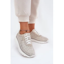 Zamszowe Ażurowe Sneakersy Na Platformie LR51-927 Złote