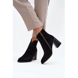 Zamszowe Botki Damskie Na Słupku Z Tłoczeniem Ocieplane Vinceza 66801 Czarne