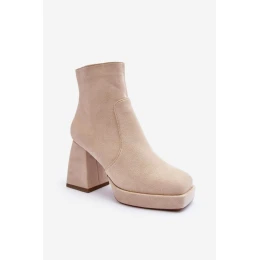 Zamszowe Botki Na Masywnym Obcasie Jasnobeżowe Abnous