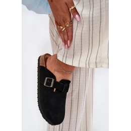 Zamszowe Klapki Chodaki Damskie Z Klamrą Big Star RR274A384 Czarne