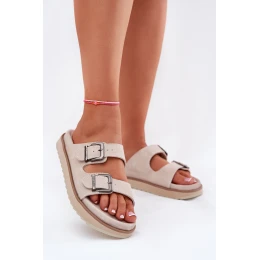 Zamszowe Klapki Damskie Z Klamrami D.Franklin DFSH405001 Beżowe