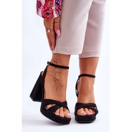 Zamszowe Sandały Na Kwadratowym Obcasie Czarne Powerful