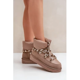 Zamszowe Śniegowce Damskie Z Grubym Sznurowaniem D.Franklin DFSH375003 Taupe