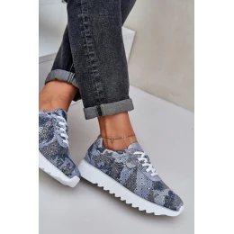 Zamszowe Wzorzyste Buty Sportowe Na Platformie Z Brokatem D&A LR51-635 Niebieskie