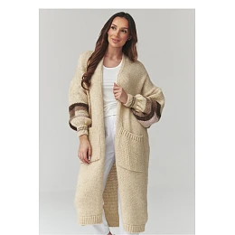 Dámsky dlhý kardigánový sveter je ideálnou voľbou pre ženy, ktoré oceňujú pohodlie a štýl v každodennom oblečení. Model v podobe dámskeho kardigánu má voľný strih a príjemný nádych pleteniny, ktorý zaručuje pohodlie počas celého dňa. Oversize sveter sa dokonale prispôsobí postave a umožňuje vytvárať módne kombinácie vrstvenia. Praktický kardigán s vreckami spája funkčnosť s moderným dizajnom. Veľké vrecká mu dodávajú charakter a dlhší strih zaručuje, že dámsky dlhý kardigán sa hodí tak ku nohaviciam, ako aj k legínam alebo šatám. Ozdobný vzor a štýlové zakončenia rukávov mu dodávajú výnimočný vzhľad. Univerzálny dámsky kardigánový sveter na každý deň sa hodí k mnohým outfitom, od ležérnych až po elegantné.