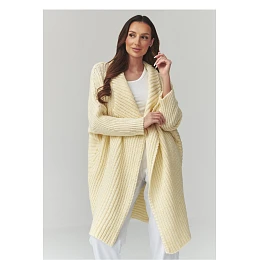 Tento dlouhý dámský svetr je skvělou volbou pro ženy, které ocení pohodlí, styl a nadčasový design. Model ve formě kardiganu se vyznačuje volným střihem, díky čemuž se skvěle přizpůsobuje postavě a poskytuje plnou volnost pohybu. Moderní oversized svetr se skvěle hodí jak do každodenních outfitů, tak do elegantnějších kombinací. Vyrobený z příjemné pleteniny kardigan dámský zajišťuje pohodlí nošení a dostatečné zahřátí v chladnějších dnech. Charakteristický materiálový vzor mu dodává unikátní vzhled a delší střih zase zajišťuje, že dlouhý oversized svetr skvěle ladí s kalhotami, legíny nebo šaty. Univerzální dámský svetr na každý den lze snadno sladit s mnoha styly, od volnočasových po městské. Je to ideální kousek do šatníku pro ženy, které hledají módní kardigan, který spojuje pohodlí a styl.