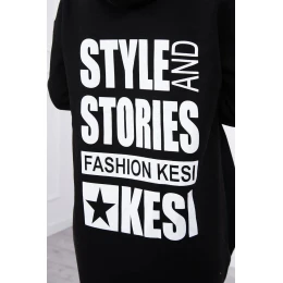 Zateplená mikina s dlhým chrbtom a kapucňou čierna