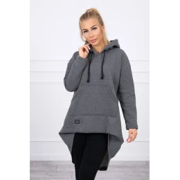 Zateplená mikina s dlhým chrbtom a kapucňou v grafitovej farbe