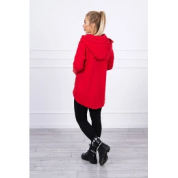 Zateplená mikina s predĺženým chrbtom a vreckami červená