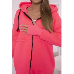 Predstavujeme súpravu mikiny a nohavíc. Mikina má kapucňu a vrecká. Mikina so zapínaním na zips, bočné rozparky v spodnej časti. Nohavice majú široký elastický pás a rebrované nohavice. Súprava je vyrobená z izolovaného materiálu. Veľkosť je univerzálna a hodí sa pre dámy veľkosti S, M alebo L.