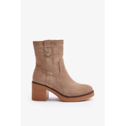 Zateplené dámske členkové topánky na podpätku Beige Vailia