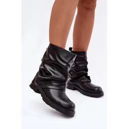 Dámské kotníkové boty vyrobené z ekologické kůže jsou pohodlnou a stylovou volbou na chladnější dny. Umístěny na plochém podpatku, zajišťují komfort při každodenním nošení. Vnitřek je vyhříván obuvním přikrývkou, která udržuje teplo. Model se vyznačuje efektem otočené, mírně mačkané horní části, která dodává módní, uvolněný charakter. Ideální pro každodenní, podzimní a zimní stylizace. Při výběru velikosti prosím řiďte se tabulkou velikostí. Při výběru velikosti se řiďte tabulkou velikostí.