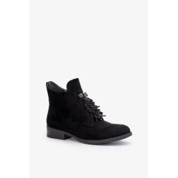 Zateplená nízka členková obuv s ozdobou na zips S.Barski Black