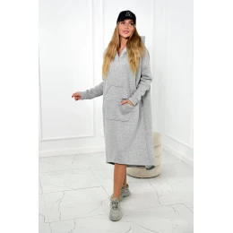 Zateplené šaty s kapucňou šedý