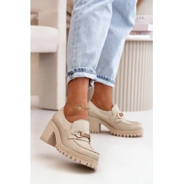 Zazoo 20175 Półbuty Damskie Na Słupku Skóra Naturalna Jasnobeżowe