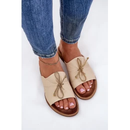 Zazoo 2659 Skórzane Klapki Damskie Beżowe