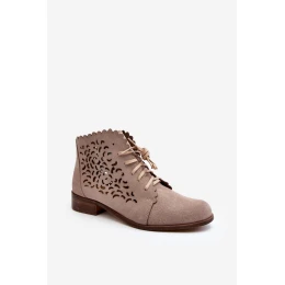 Zazoo 2871 Ażurowe Botki Damskie Sznurowane Beżowe
