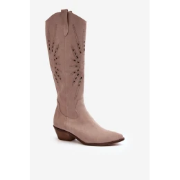 Zazoo 2909 Zamszowe Kozaki Ażurowe Na Niskim Obcasie Beżowe